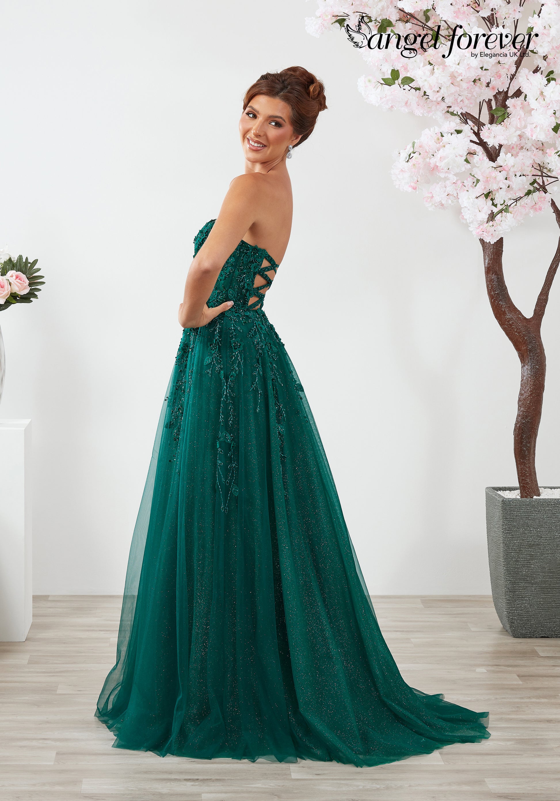 Beautiful tulle A - line gown with floral detail, sweetheart neckline and a lace up back.
