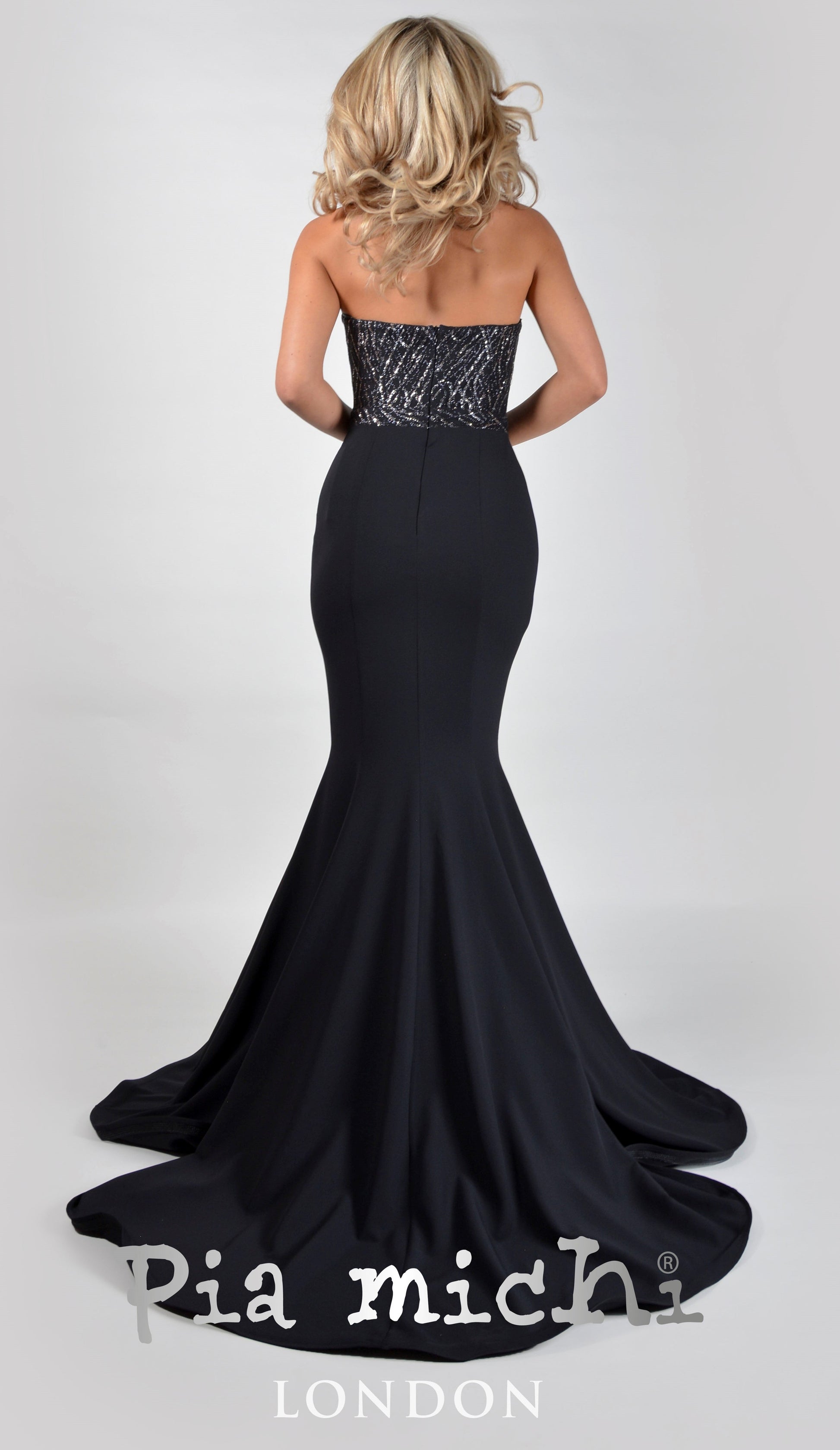 An elegant fitted gown with a strapless mesh bodice and a fishtail skirt.