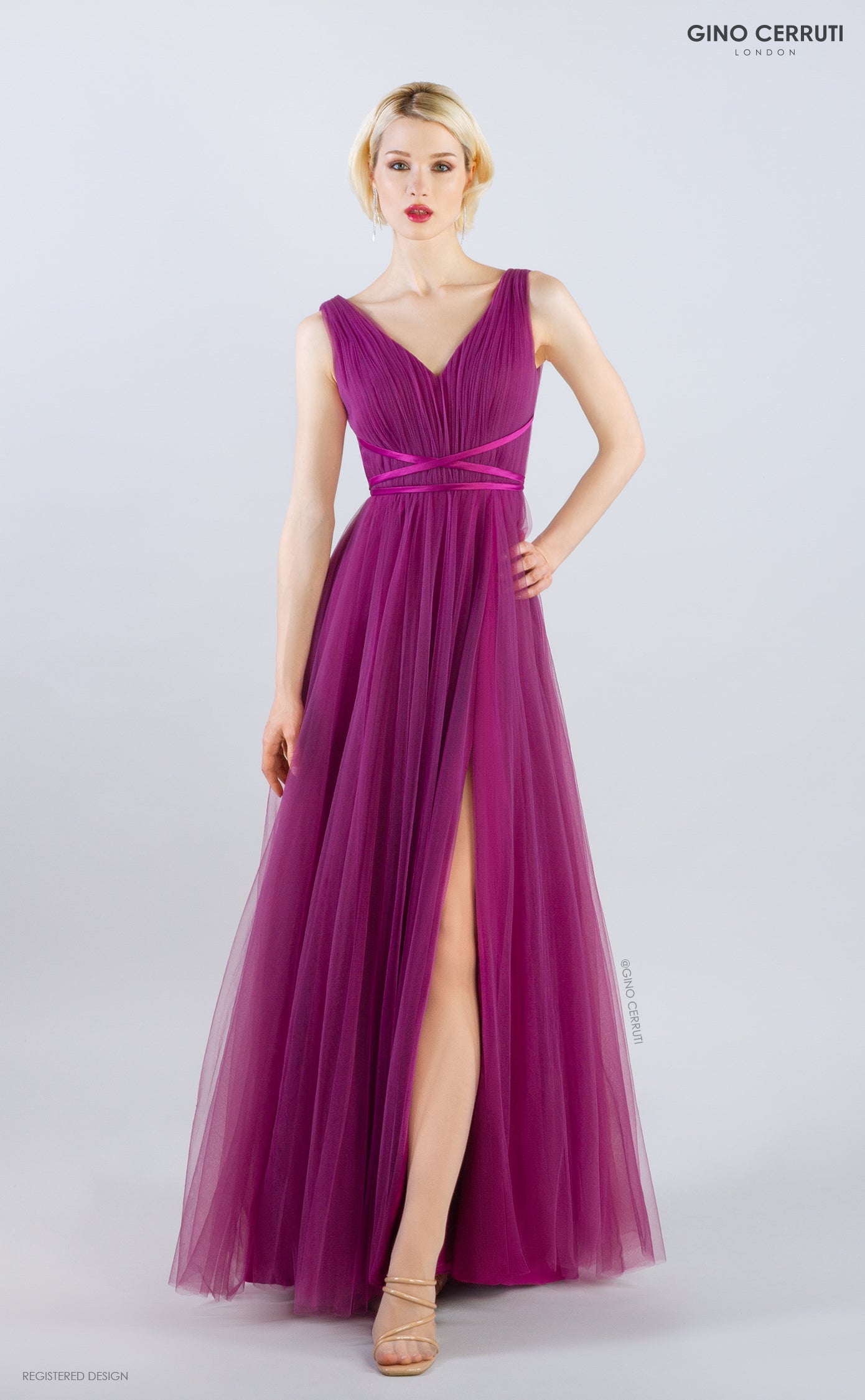A beautiful chiffon skirt with a pleated tulle bodice and a unique belt detail.