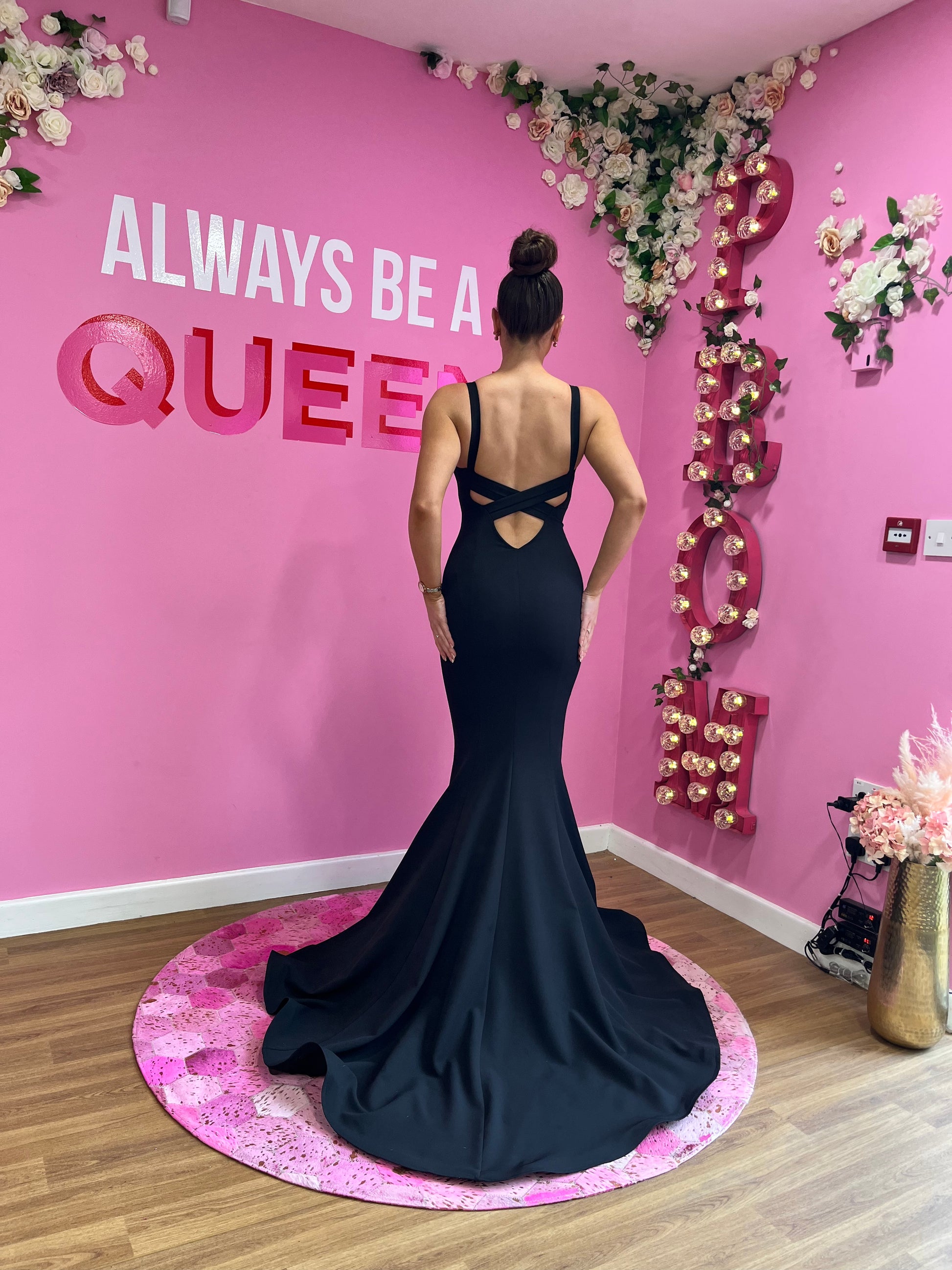 A simple yet stunning fitted gown with a cross back detail and a subtle train.