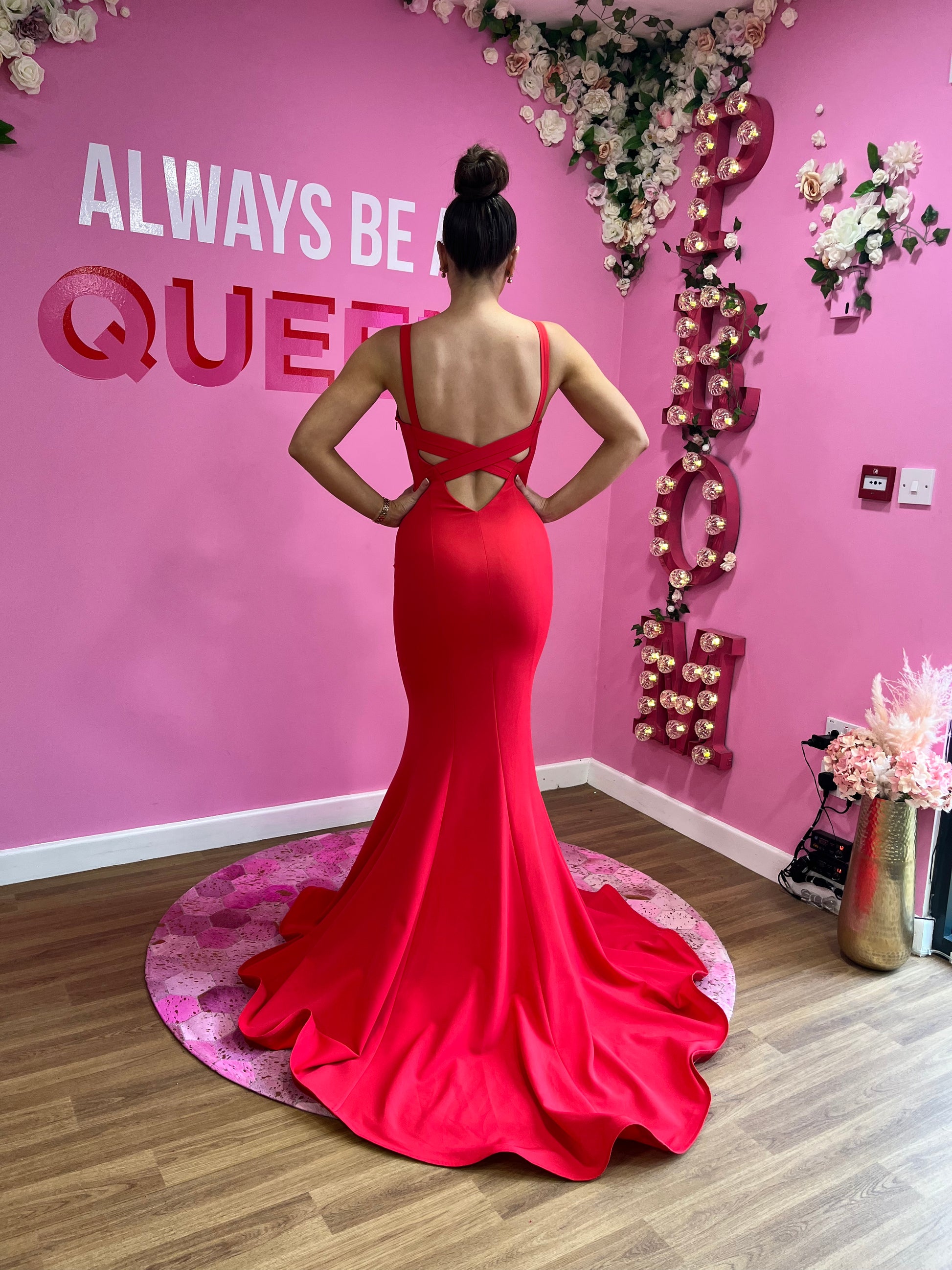 A simple yet stunning fitted gown with a cross back detail and a subtle train.